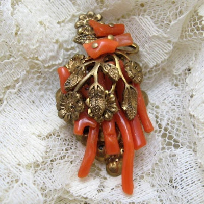 So with that - I thought I'd share with you some of my favorite vintage coral jewelry pieces that I've been admiring. Nothing says summer coastal chic more - than coral accessories..especially with a bit of turquoise mixed in.